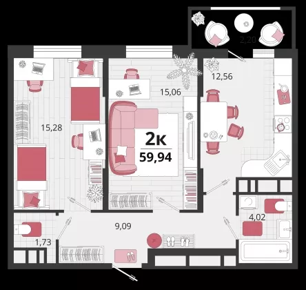 Двухкомнатная квартира в современном микрорайоне по типу город в городе.