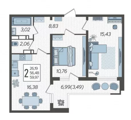 | Площадь, кв.м. | 59.97 |