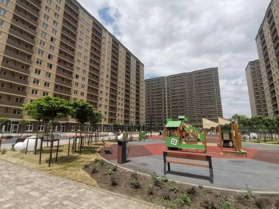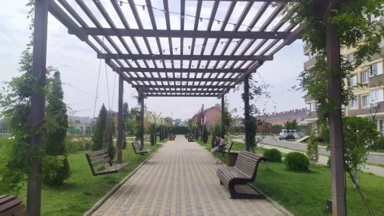 - Очень уютный спальный район с фруктовыми деревьями на территории комплекса!