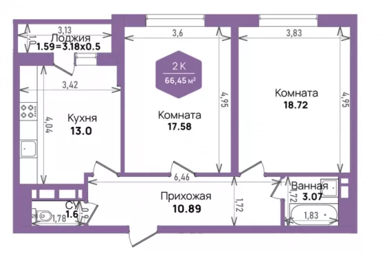 Продается 2-х комн. новостройка, 66.75 кв.м., 6/24 эт