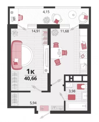 Продается однокомнатная новостройка, 40.66 кв.м., 5/18 эт