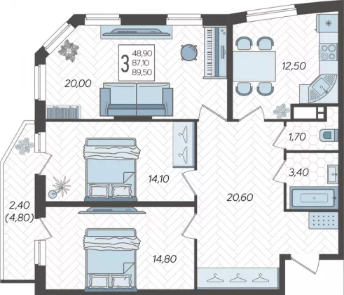 Продается 3-х комн. новостройка, 86 кв.м., 11/16 эт