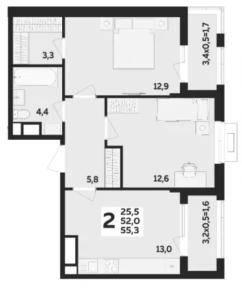Двухкомнатная квартира в комплексе класса комфорт+.