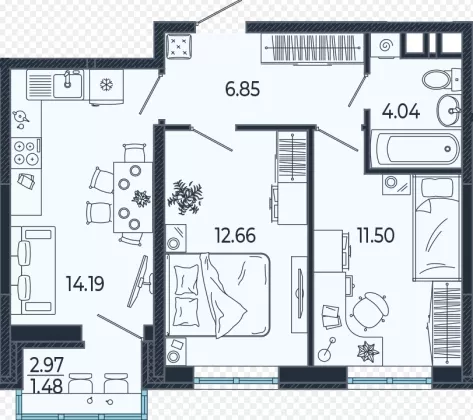 В квартире выполнена качественная предчистовая отделка - полная разводка электрики, стяжка пола, ровные оштукатуренные стены, радиаторы отопления, качественная входная дверь, двухкамерное остекление с напылением.