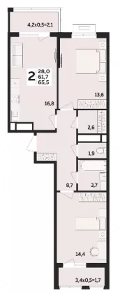 Продается 2-х комн. новостройка, 65.5 кв.м., 7/16 эт