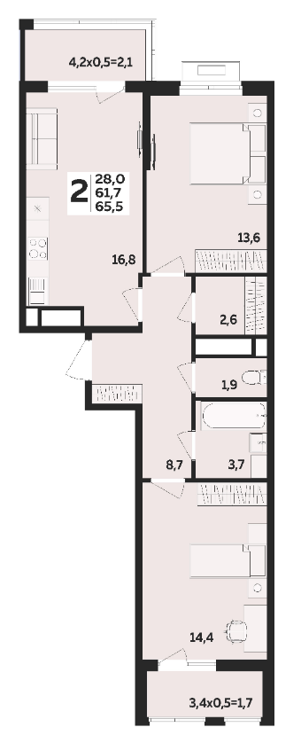 Продается 2-х комн. новостройка, 65.5 кв.м., 12/16 эт