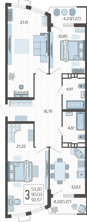 Продается 3-х комн. новостройка, 92.53 кв.м., 4/21 эт