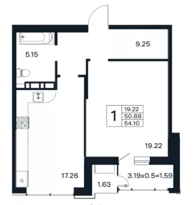 Продается однокомнатная новостройка, 54.1 кв.м., 9/12 эт