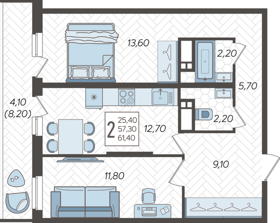 Продается 2-х комн. новостройка, 61.2 кв.м., 4/16 эт