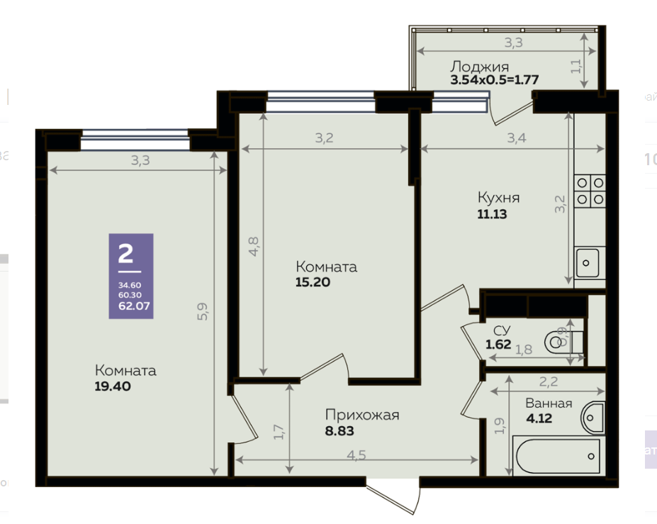 | Площадь, кв.м. | 62.26 |
