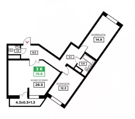 | Площадь, кв.м. | 74.6 |