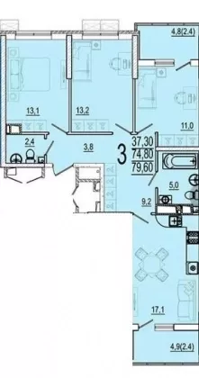 Продается 3-х комн. новостройка, 79.6 кв.м., 6/23 эт