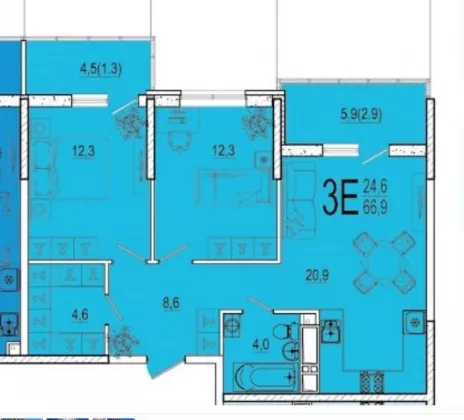 Продается 3-х комн. новостройка, 66.9 кв.м., 12/23 эт