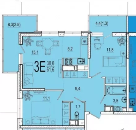 Продается 2-х комн. новостройка, 61.6 кв.м., 12/23 эт
