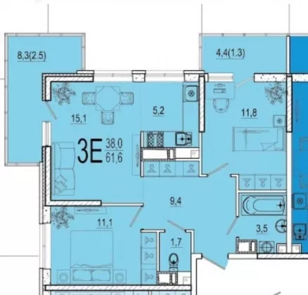 | Площадь, кв.м. | 61.6 |