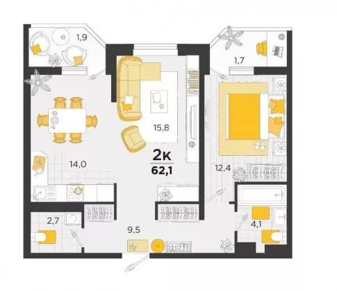 Продается 3-х комн. новостройка, 62.1 кв.м., 4/23 эт