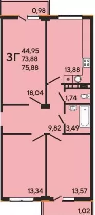 Продается 3-х комн. новостройка, 72.88 кв.м., 7/8 эт