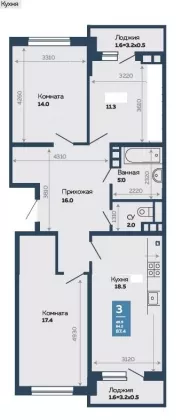 | Комнат в квартире | 3 |