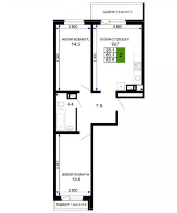 | Площадь, кв.м. | 62.5 |
