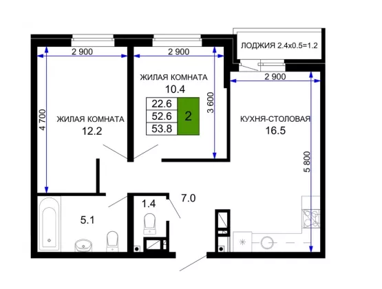 | Жилая площадь | 22.6 |