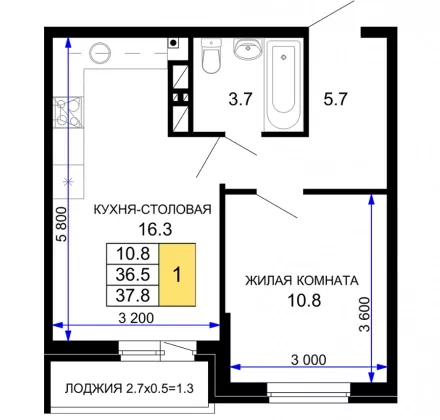 Продается однокомнатная новостройка, 37.8 кв.м., 9/24 эт
