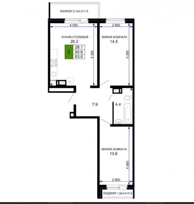 Продается 2-х комн. новостройка, 63 кв.м., 10/16 эт