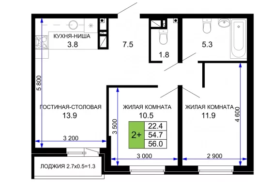 | Площадь, кв.м. | 56 |