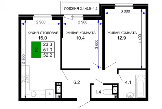 Продается 2-х комн. новостройка, 52.2 кв.м., 8/24 эт