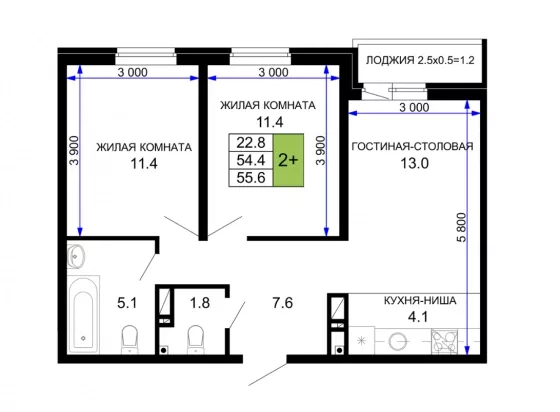 Продается 2-х комн. новостройка, 55.6 кв.м., 11/22 эт