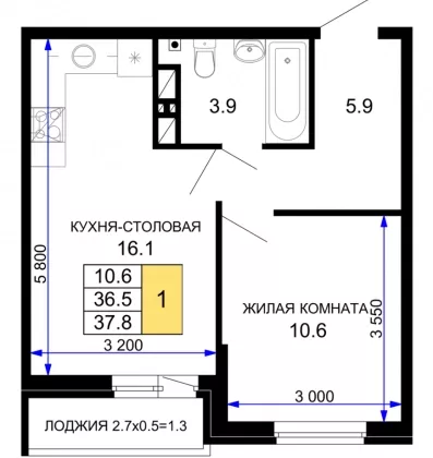 Продается однокомнатная новостройка, 37.8 кв.м., 11/16 эт