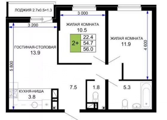 Продается 2-х комн. новостройка, 56 кв.м., 10/16 эт