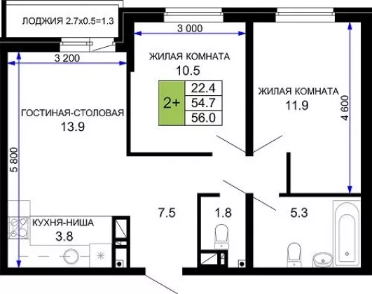 Продается 2-х комн. новостройка, 56 кв.м., 6/16 эт