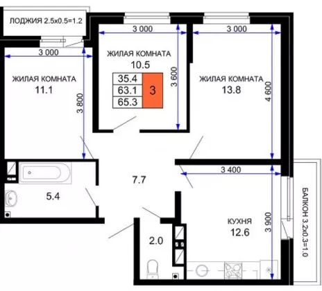 Продается 3-х комн. новостройка, 55.2 кв.м., 3/16 эт