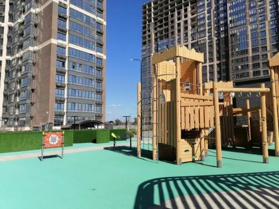 Во дворе-стилобат: 1 уровень - крытый наземный паркинг, а 2 уровень - зоны отдыха и развлечений. В доме система умный дом, три лифта!!! На первом этаже помещение для хранения самокатов, велосипедов и колясок. Отведено специальное место для мытья лапок животным. На территории новый детский сад !