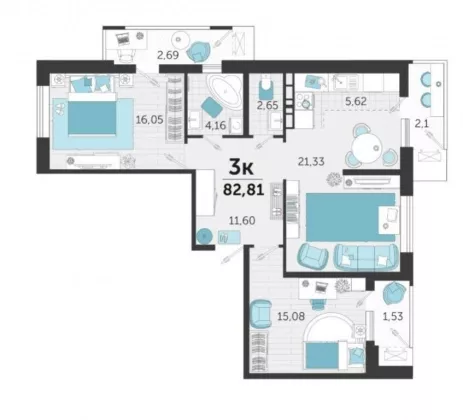 | Площадь, кв.м. | 82.81 |