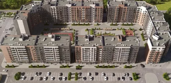 Вместительная парковка места хватит всем расположена вдоль внешнего периметра ЖК, для удобства автолюбителей в доме сквозные подъезды, из которых можно выйти на парковку. Сквозные подъезды удобны для всех есть возможность зайти в подъезд с коляской с любой стороны дома.