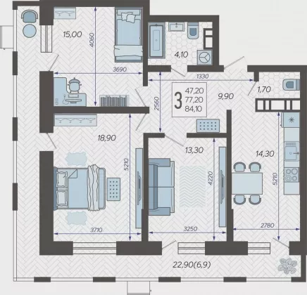 Продается 3-х комн. новостройка, 84.1 кв.м., 6/12 эт