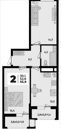 Продается 2-х комн. новостройка, 55.9 кв.м., 4/8 эт