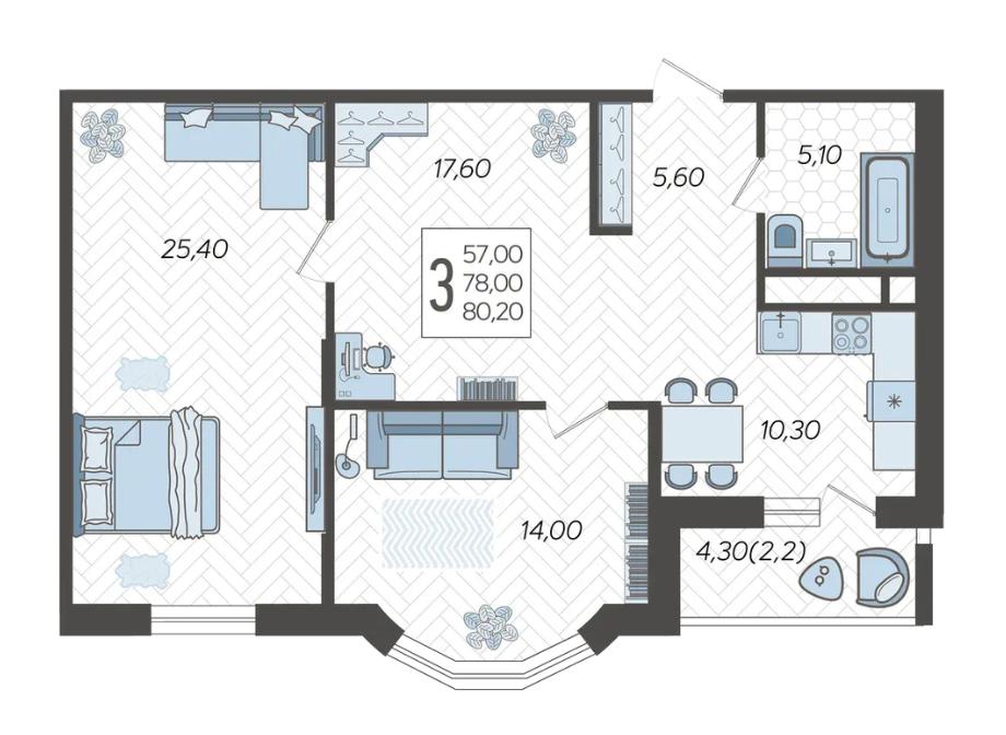 Продается 3-х комн. новостройка, 80.2 кв.м., 16/16 эт
