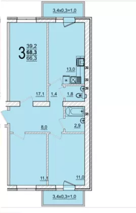 Продается 3-х комн. новостройка, 68.3 кв.м., 4/5 эт