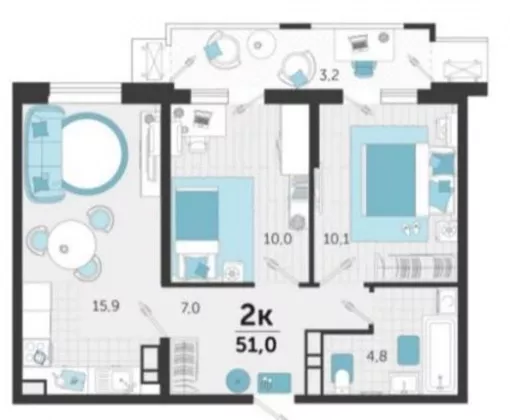 Продается 2-х комн. новостройка, 51 кв.м., 19/25 эт