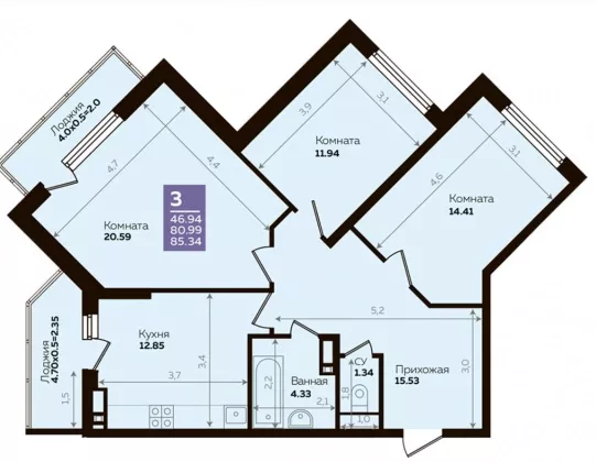 | Площадь, кв.м. | 85.34 |