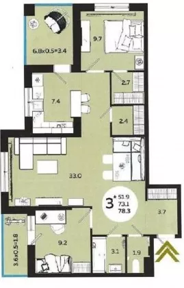 Продается 3-х комн. новостройка, 78.3 кв.м., 4/24 эт