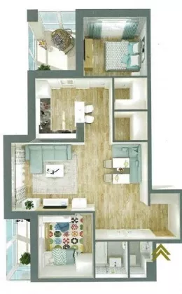 Просторная кухня, раздельные санузлы, два балкона. В спальни есть своя гардеробная, также в квартире есть отдельная комната (кладовка).