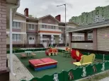 Большое расстояние между домами, много места для парковки автомобилей, также есть многоуровневая стоянка. Двор с красочными детскими и спортивными площадками, скамейками для отдыха и зелеными кустарниками и деревьями.