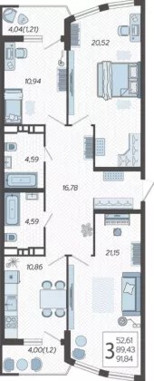 Продается 3-х комн. новостройка, 91.84 кв.м., 16/21 эт