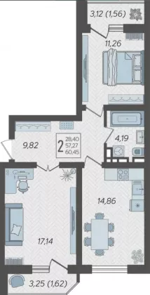 Продается 2-х комн. новостройка, 60.45 кв.м., 11/21 эт