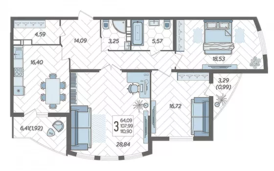 | Жилая площадь | 64.09 |