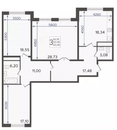 Продается 3-х комн. новостройка, 120 кв.м., 3/22 эт
