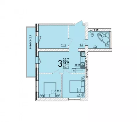 Продается 3-х комн. новостройка, 61.2 кв.м., 4/5 эт